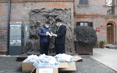 Chabad rabbi Greenberg felt the same and has always appreciated how welcoming the Chinese were to his family and community. To pay it forward, even with most of his community still not back in China, Greenberg organized a mask drive and distributed thousands of masks and aid kits to Jews and non-Jews in Shanghai’s Hongkou District. The area is home to a large number of elderly citizens who have had a hard time accessing the limited quantities of supplies at the city’s distribution centers. Volunteers from the Jewish War Refugee Museum helped Greenberg deliver them directly to people’s homes so they wouldn’t have to line up in the cold.