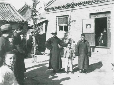 Zhao family in front of their home on South Teaching Scripture Lane, early 20th century